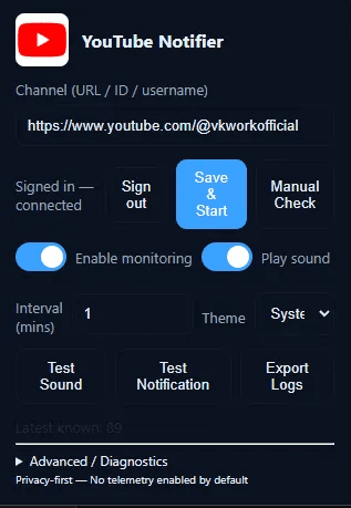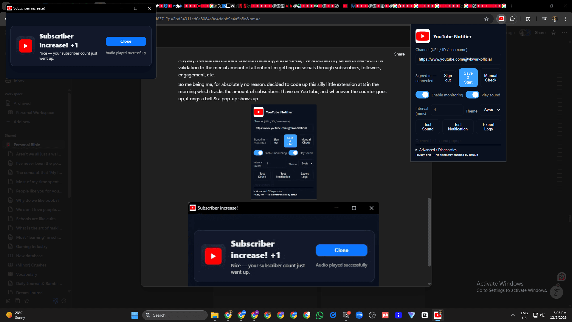 So me being me, for absolutely no reason, decided to code up this silly little extension at 8 in the morning which tracks the amount of subscribers I have on YouTube, and whenever the counter goes up, it rings a bell & a pop-up shows up